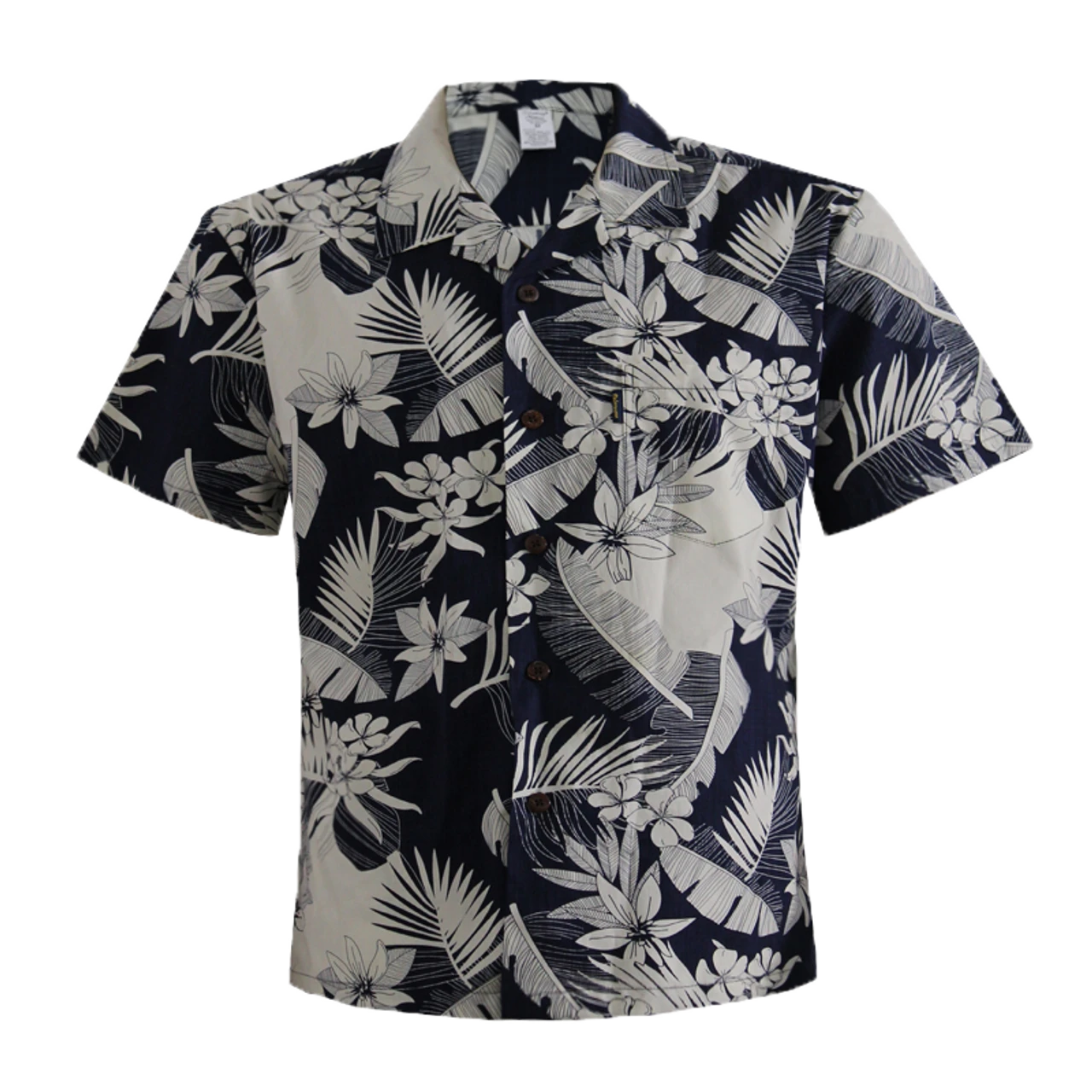 Men’s Cotton Aloha Shirt – Navy with Cream Floral