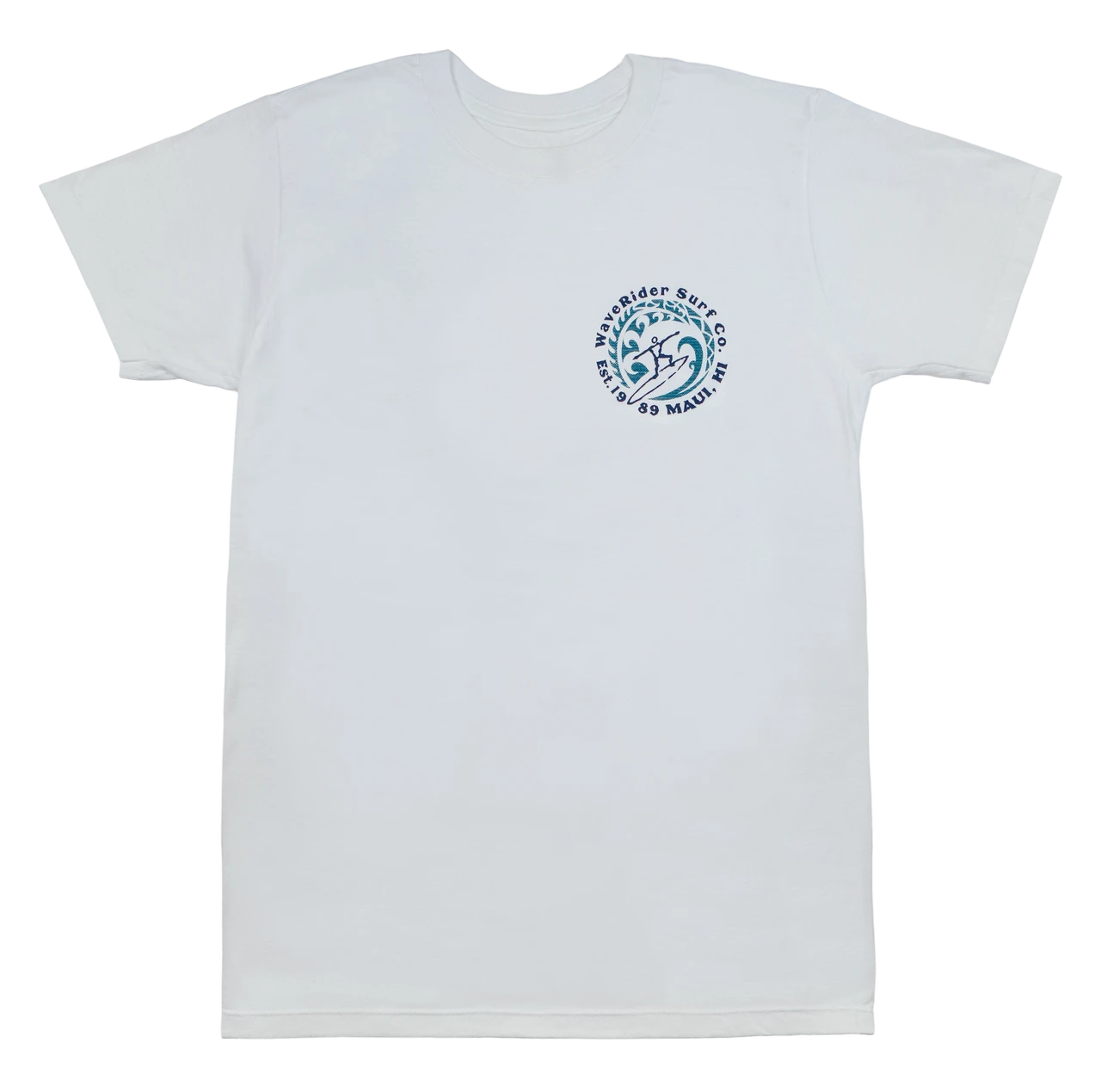 This design features a petroglyph inspired surfer while showcasing some of Maui’s most famous and wellknown wave riding beaches.