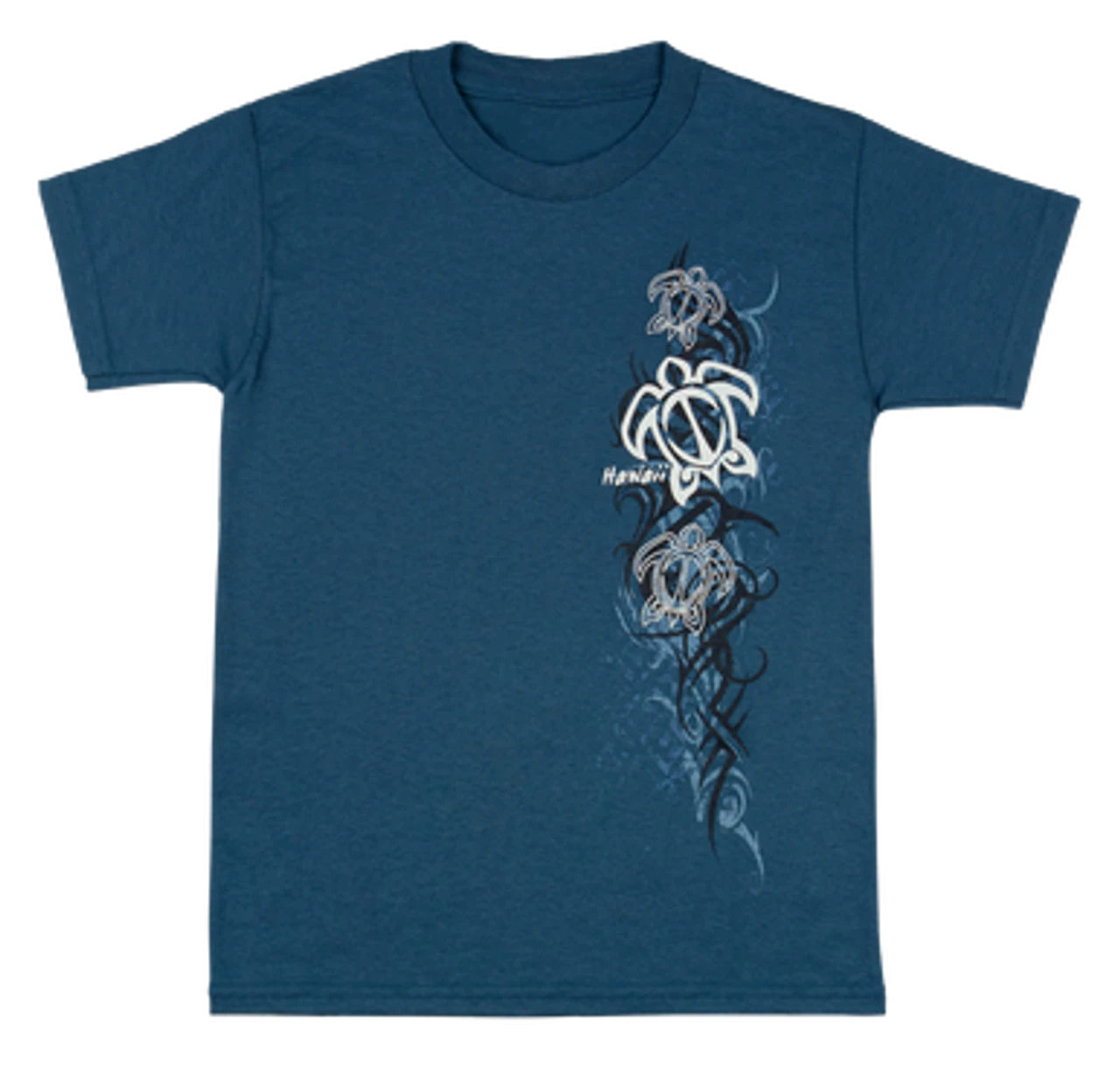 A striking tribal pattern combined with the noble honu create the perfect, impactful shirt design!