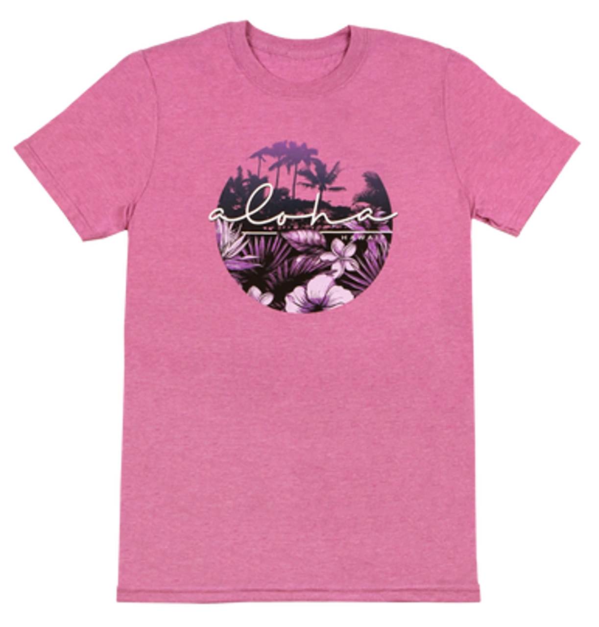 Ladies Crew Neck Tee – Aloha Scenic: Lavender Heather