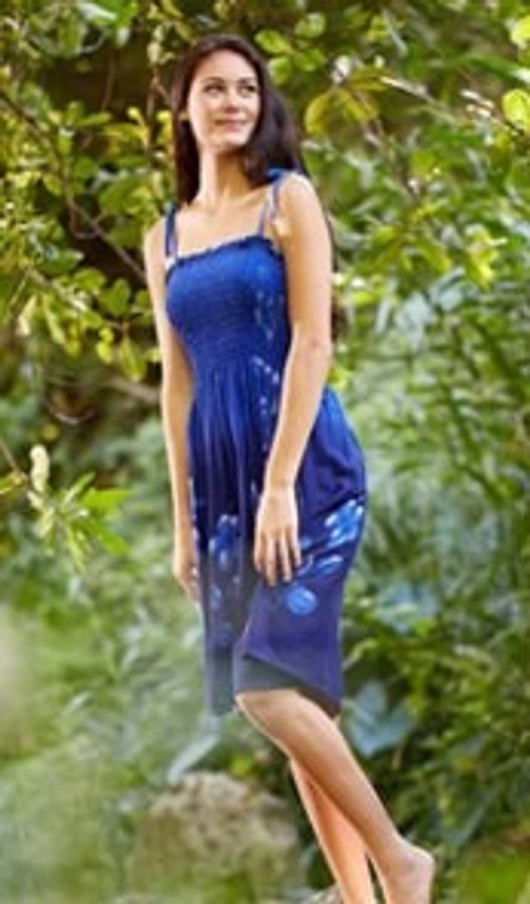 Ladies Short Elastic Tube Dress – Hibiscus Watercolor: Purple