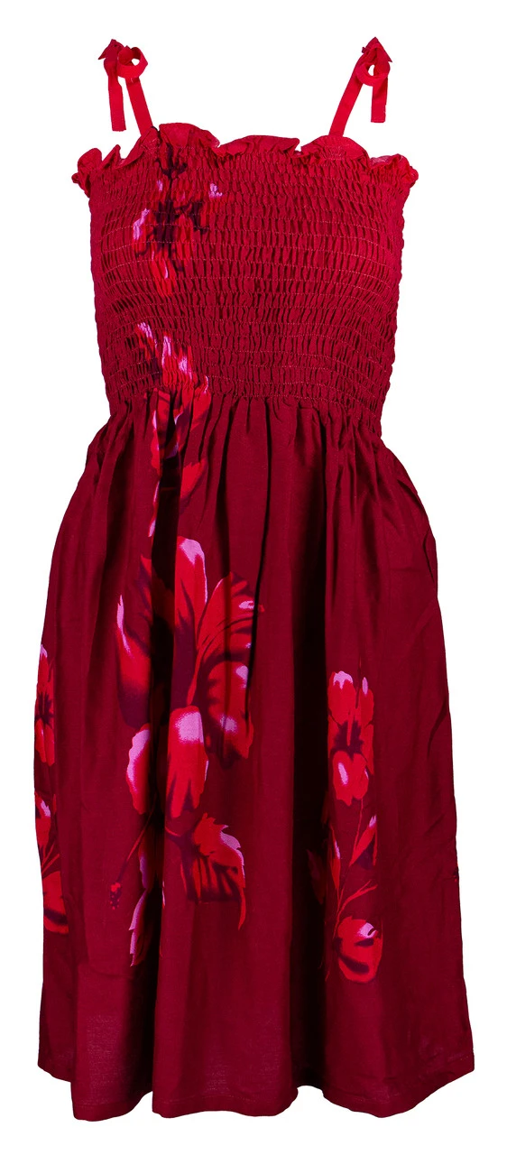 Ladies Short Elastic Tube Dress – Hibiscus Watercolor: Red
