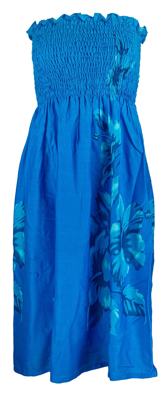 Ladies Short Elastic Tube Dress – Hibiscus Watercolor: Turquoise