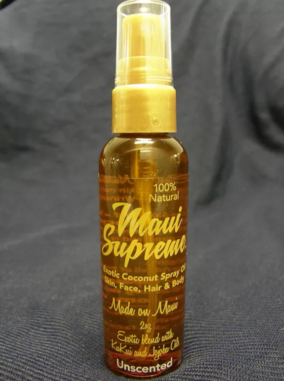 Exotic blend of coconut, kukui and jojoba oils. Contains vitamins A, C, & E.