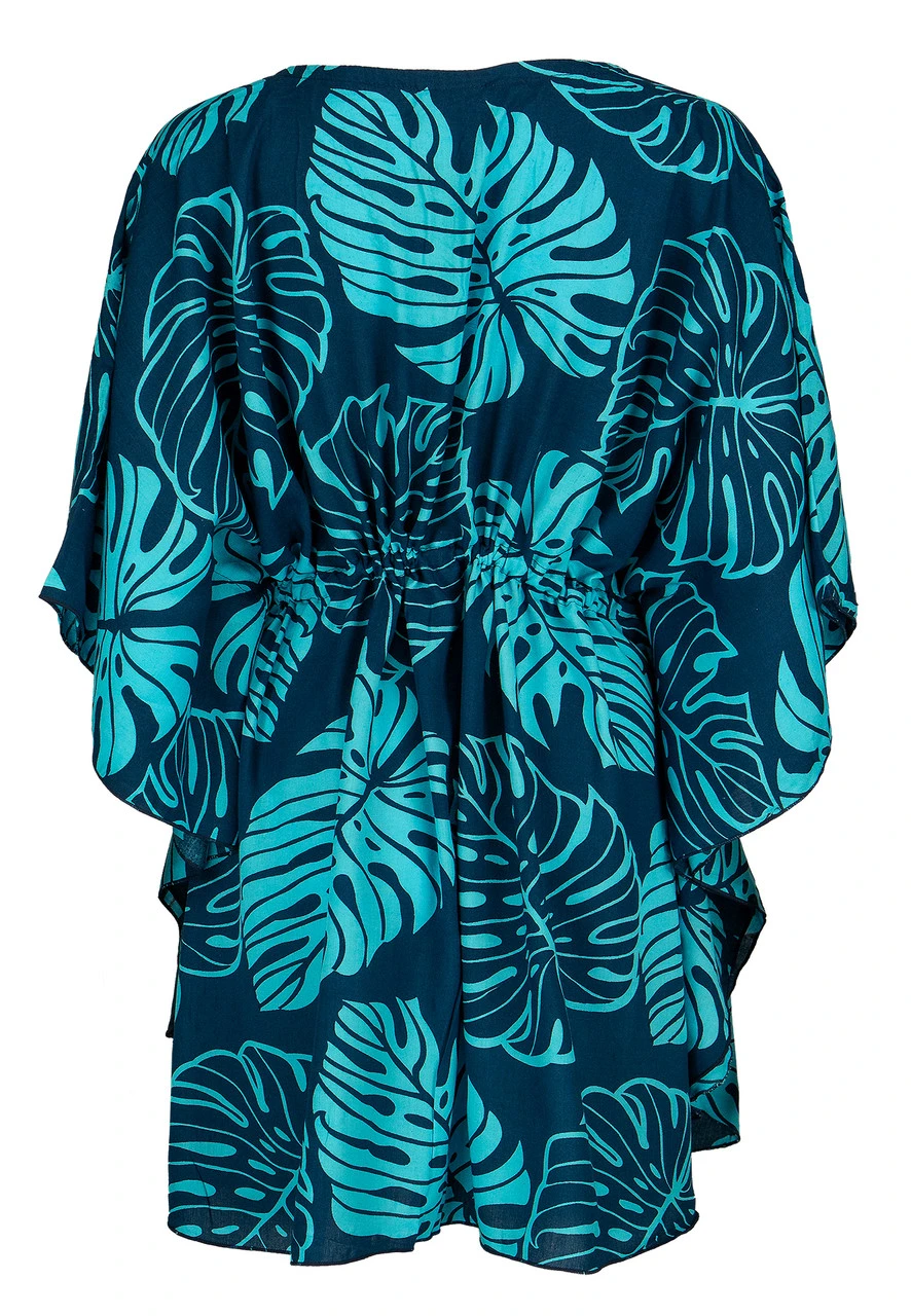 Napua Collection Cover Ups: Monstera Leaf - Navy/Blue - Image 4