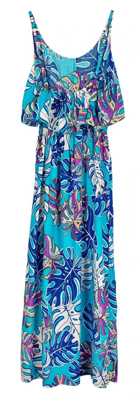 Napua Collection Ruffle Maxi Dress – Abstract Monstera: Blue