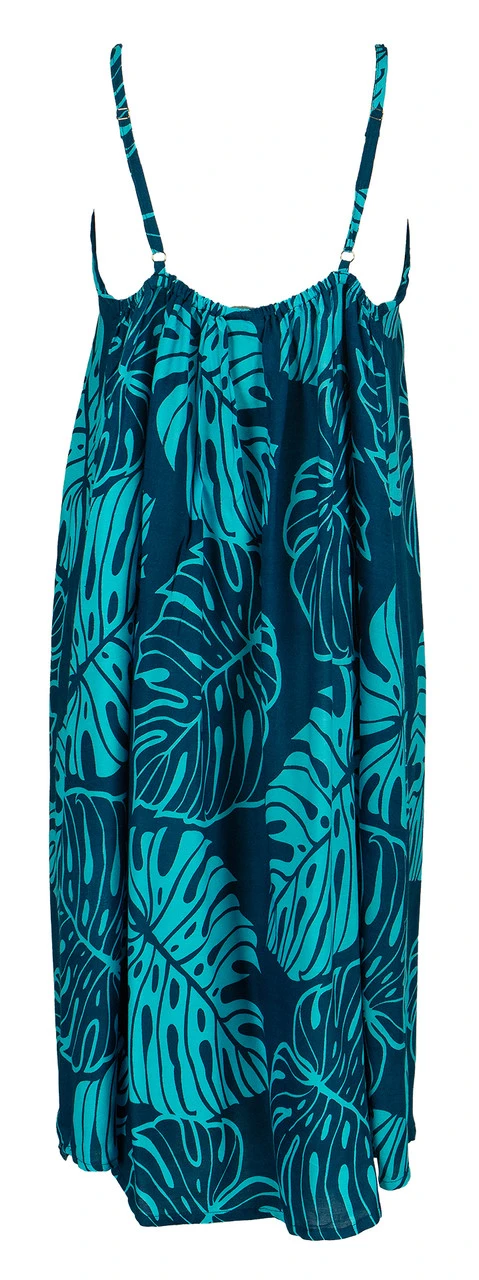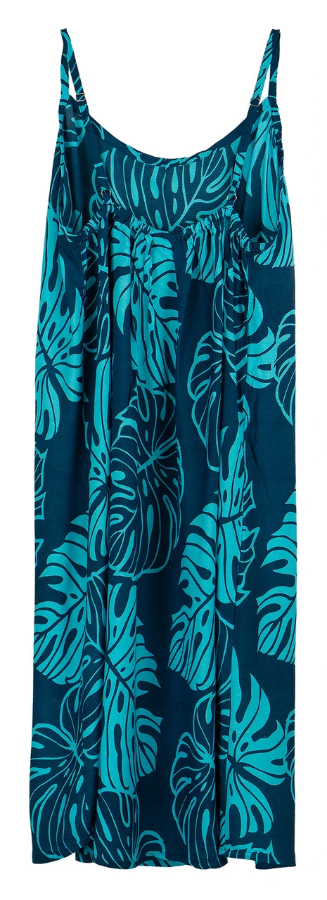 Napua Collection Sundress: Monstera Leaf – Navy W/ Blue